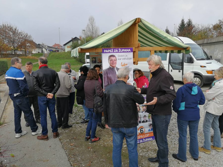 Ekipa LDP je nato na stojnicah kmetov nakupila nekaj izdelkov (kruh, salame in sir), ki smo jih ponudili našim volivcem na stojnici na parkirišču poleg Mercatorja. Kot že prejšnjič je bilo tudi tokrat živahno, veliko obiska in pogovora o težavah, ki tarejo ljudi. Nekatere težave so rešljive na nivoju občine, za druge pa bo morala poskrbeti država. Obnova OŠ Frana Albrehta je tema pogovorov ves čas, prav tako tudi obnova športne dvorane in ureditev športnih površin okoli mestnih šol. Danes pa smo se pogovarjali tudi o težavah pri skrbi za obnemogle sorodnike. Gre za zelo aktualno temo in občina bo morala na tem področju svojo podporo povečati. Svetniška skupina Liste Dušana Papeža je v preteklem mandatu Občinskega sveta že opozarjala na težavo, da ima Zavod Pristan za potrebe občanov in občank premajhne kapacitete, te so odvisne od plačila občine. Predvsem pa njihovo delo poteka samo med tednom, razen izjemoma ob vikendih in praznikih, in samo do 15. ure. Ostareli, bolniki in njihovi svojci pa potrebujejo pomoč tudi med vikendi, za praznike in v popoldanskih urah. V tem delu občina lahko sama ureja t.i. dolgotrajno oskrbo in poskrbi za višji standard svojih občanov.